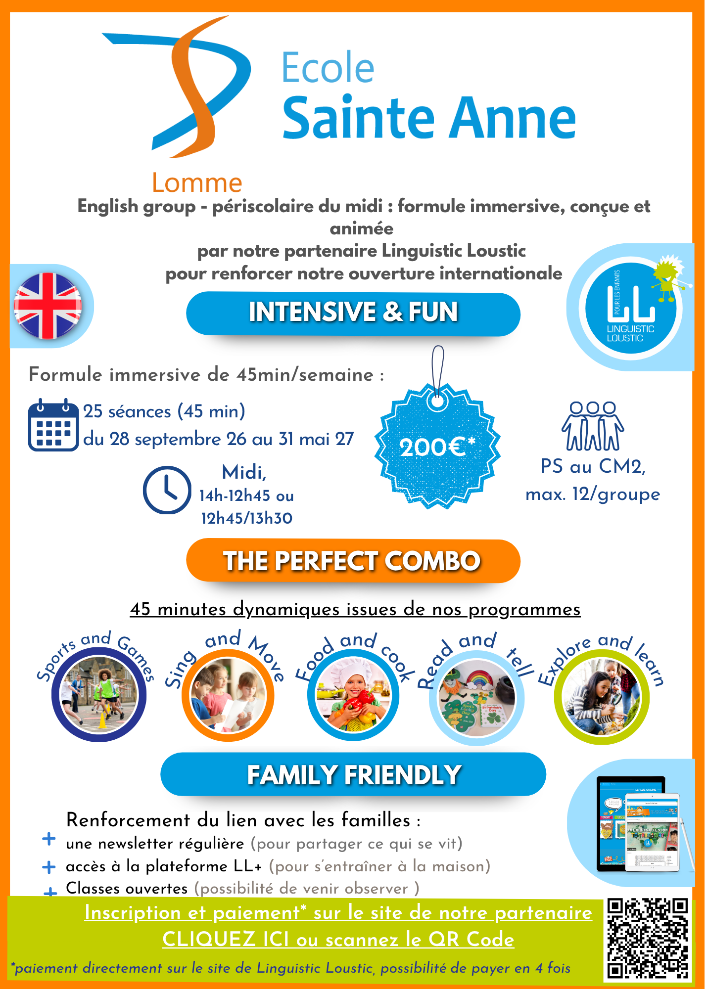 Ateliers en Anglais « École Sainte Anne » Année 2026 2027