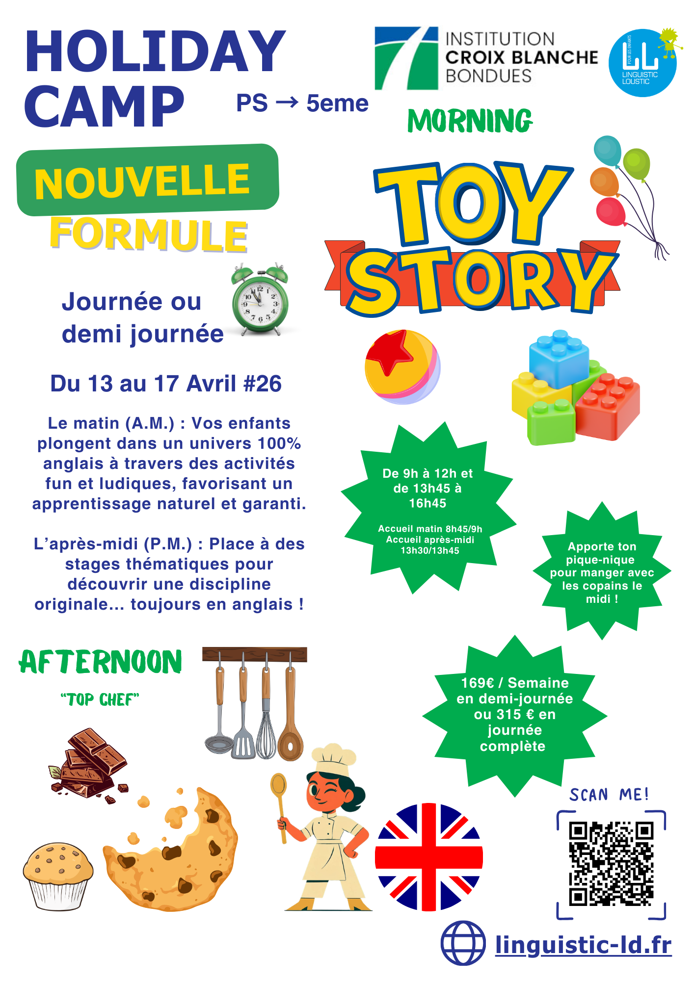 Stage(s) Anglais « Toy Story » et/ou « Top Chef » à l’école La Croix Blanche, Bondues – 13-17 Avril 2026